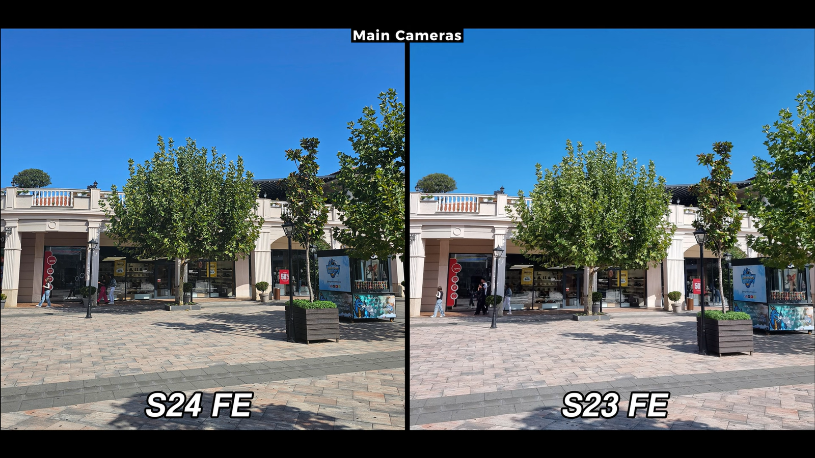 Оба смартфона - S23 FE и S24 FE - имеют схожий стиль обработки изображений. При этом S24 FE днём лучше работает со светлыми цветами и точнее отображает их по сравнению с S23 FE. Также у новинки более яркая цветовая палитра по сравнению с предшественником. S23 FE лучше справляется с тёмными участками на снимках. Ещё более заметна эта разница при сравнении ультрашириков смартфонов.